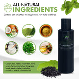 Coconut oil, neem, rice water, mint, onion, henna, currylive, fenugreek, black seeds, chebe, mahalab, khumfur, ambar, cinnamon oil and gabgab