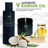 - Karkar oil also helps to slow down premature greying of the hair to keep it looking darker for longer.