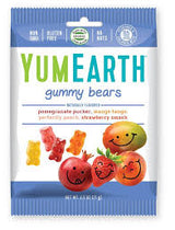 Yum earth organic gummy bears snack pack. Made with organic. Cane sugar with assorted flavours.